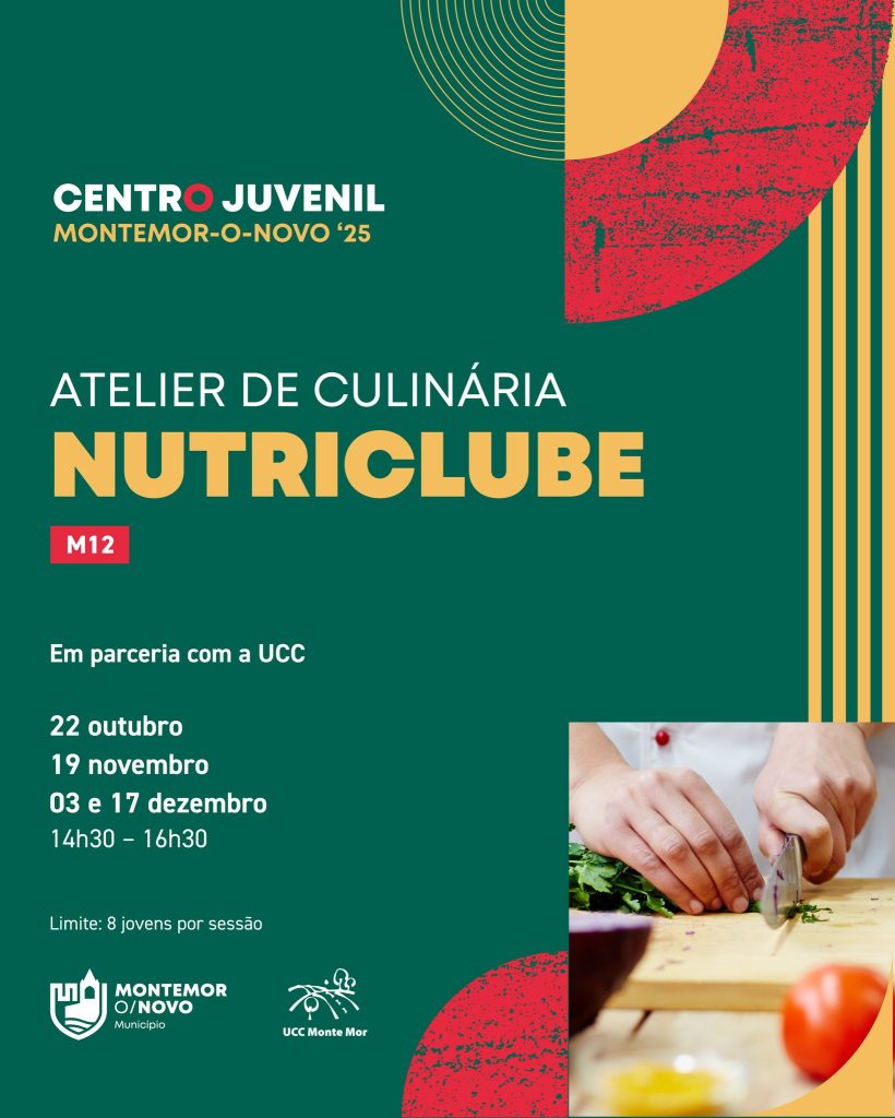 Atelier de culinária “Nutriclube” a 17 de dezembro no Centro Juvenil de Montemor-o-Novo