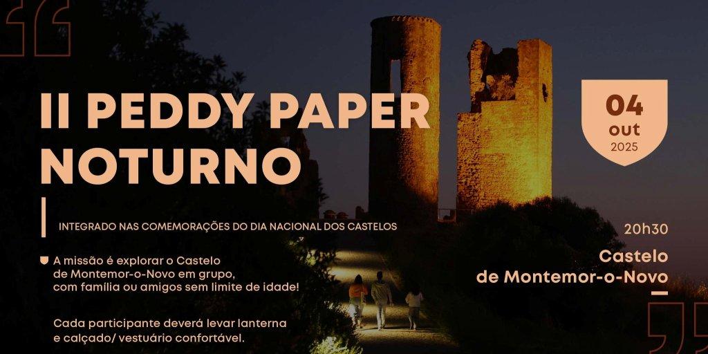 Montemor-o-Novo, dia 4 de outubro vai acolher o II Peddy Paper Noturno, integrado nas comemorações do Dia Nacional dos Castelos. A missão é explorar o castelo de Montemor-o-Novo.