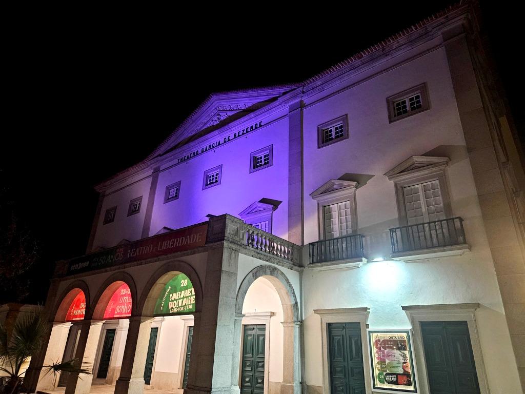 O Município de Évora associou-se à campanha internacional “𝗨𝗻𝗶𝗱𝗼𝘀 𝗽𝗲𝗹𝗮 𝗗𝗶𝘀𝗹𝗲𝘅𝗶𝗮” com a iluminação do Teatro Garcia de Resende na noite de ontem, 8 de outubro, uma iniciativa da Disfam e do Observatório Internacional de Dislexia e Outras Dificuldades Específicas de Aprendizagem (OIDEA).