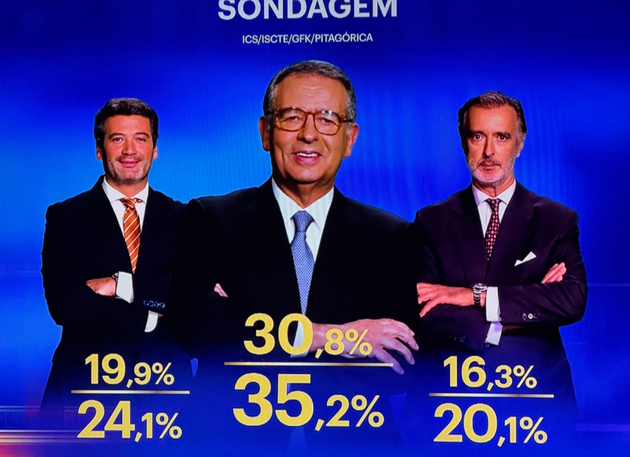 Na terceira posição surge João Cotrim Figueiredo, com uma percentagem entre 16% e 20%. Mais atrás aparecem Gouveia e Melo e Marques Mendes, que, segundo as mesmas sondagens, ficam fora da corrida à segunda volta, não reunindo votos suficientes para disputar a fase decisiva da eleição.