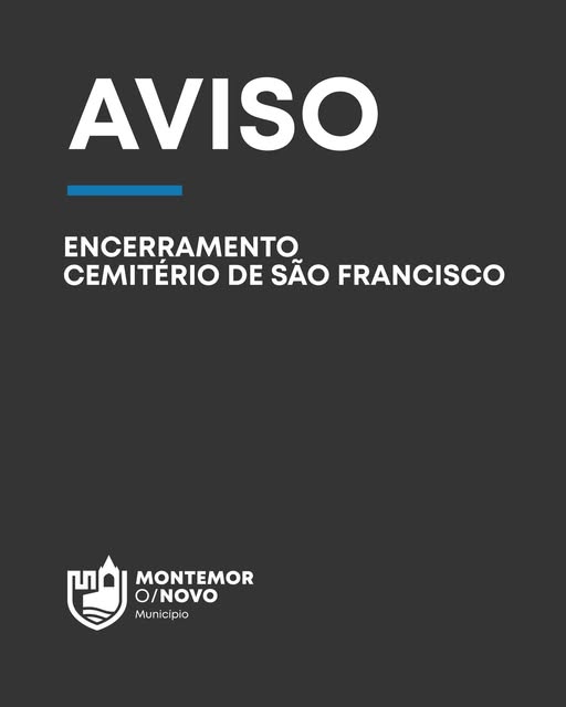 A Câmara Municipal de Montemor-o-Novo, dá conta que o Cemitério Municipal de São Francisco, encontra-se encerrado temporariamente por questões de segurança, na sequência da tempestade Kristin e dos alertas subsequentes, que originaram ventos e chuvas fortes.
