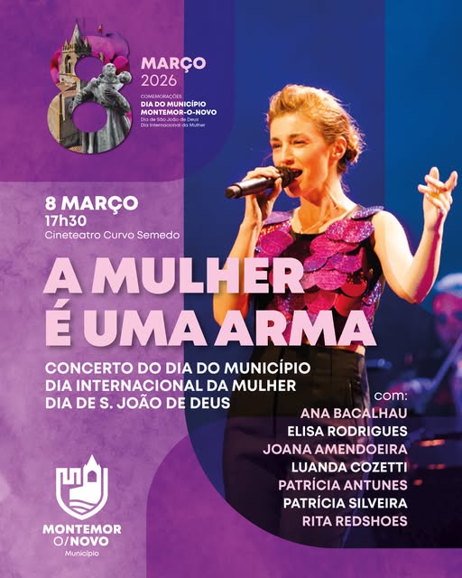 O Município de Montemor-o-Novo promove, no próximo dia 8 de março, às 17h30, no Cineteatro Curvo Semedo, o concerto “A Mulher é uma Arma”, integrado nas comemorações do Dia do Município, do Dia Internacional da Mulher e do Dia de São João de Deus.
