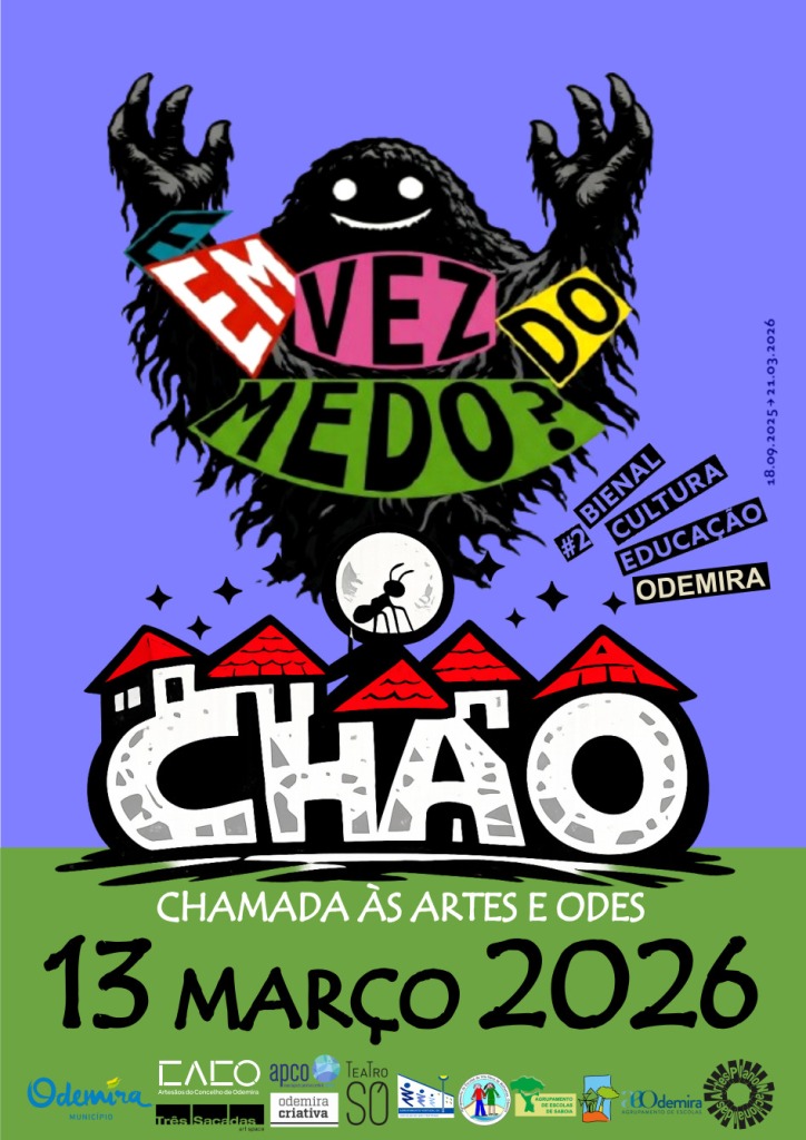 No dia 13 de março, a vila de Odemira volta a ser palco da CHÃO – Chamada às Artes e Odes, na terceira edição da Mostra de Escolas do Plano Nacional das Artes (PNA). Com o tema “E em vez do Medo”, a iniciativa reúne cerca de 300 alunos, professores, artistas e a comunidade para transformar Odemira num espaço de descoberta, encontro e celebração artística.
