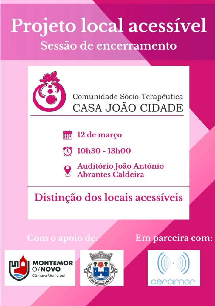 A Comunidade Sócio-Terapêutica Casa João Cidade promove, esta quinta-feira, dia 12 de março, a sessão de encerramento do Projeto Local Acessível, iniciativa dedicada à promoção da inclusão e da acessibilidade no concelho.