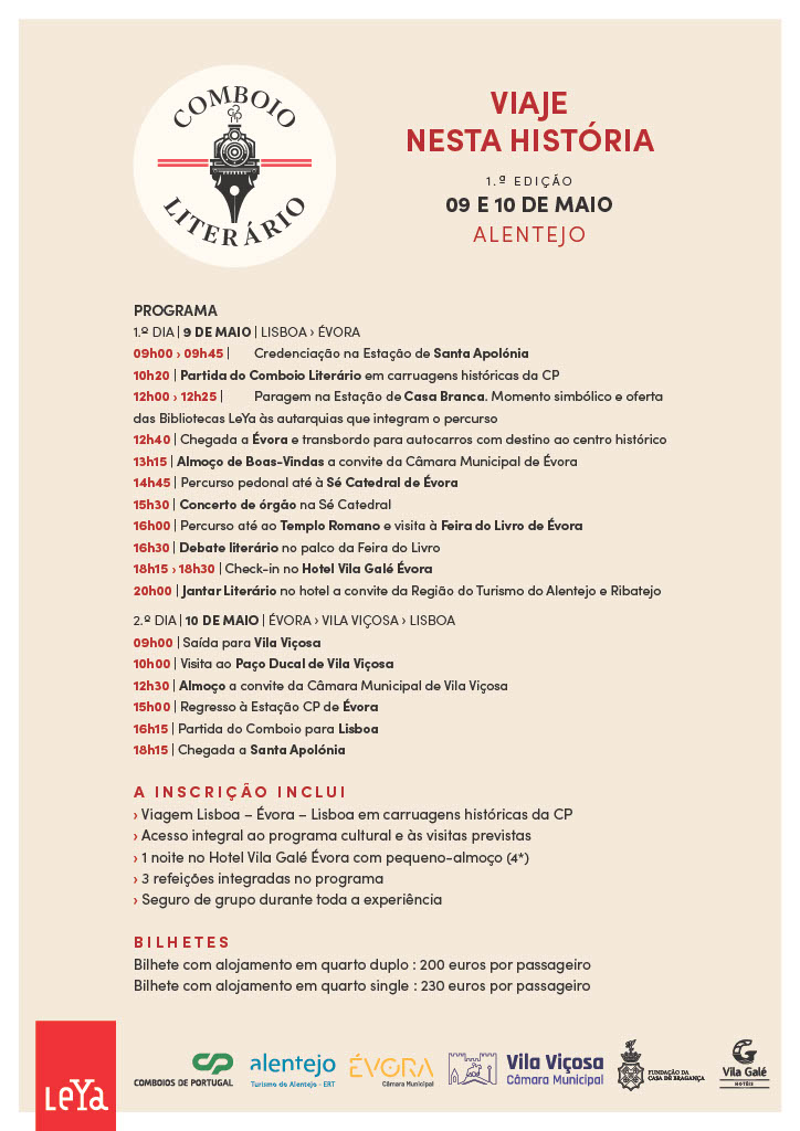 No dia 9 de maio, o Comboio Literário parte da estação de Santa Apolónia, em Lisboa, dando início a uma viagem cultural até à região Alentejo.