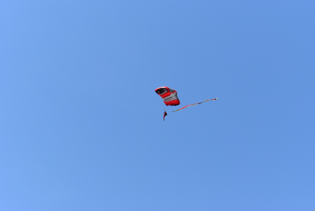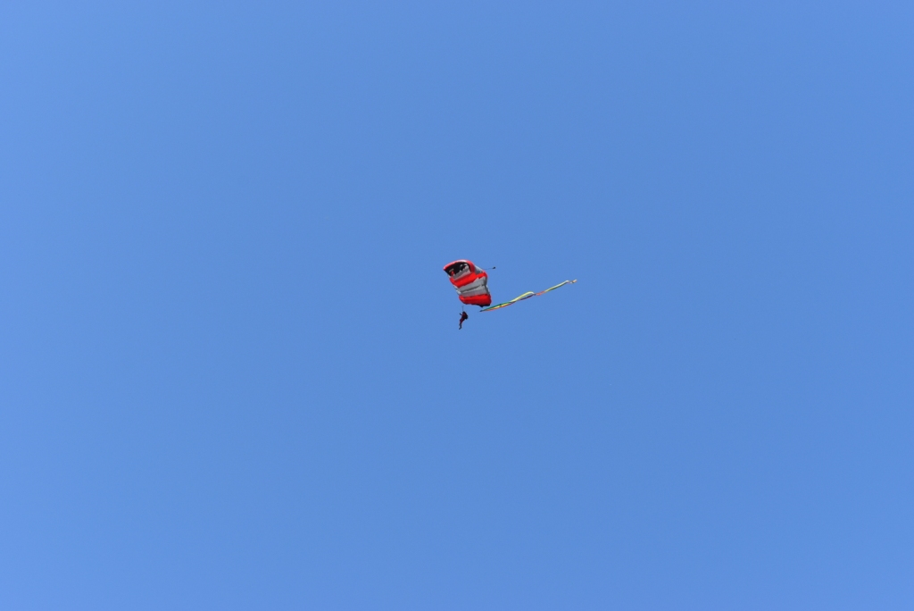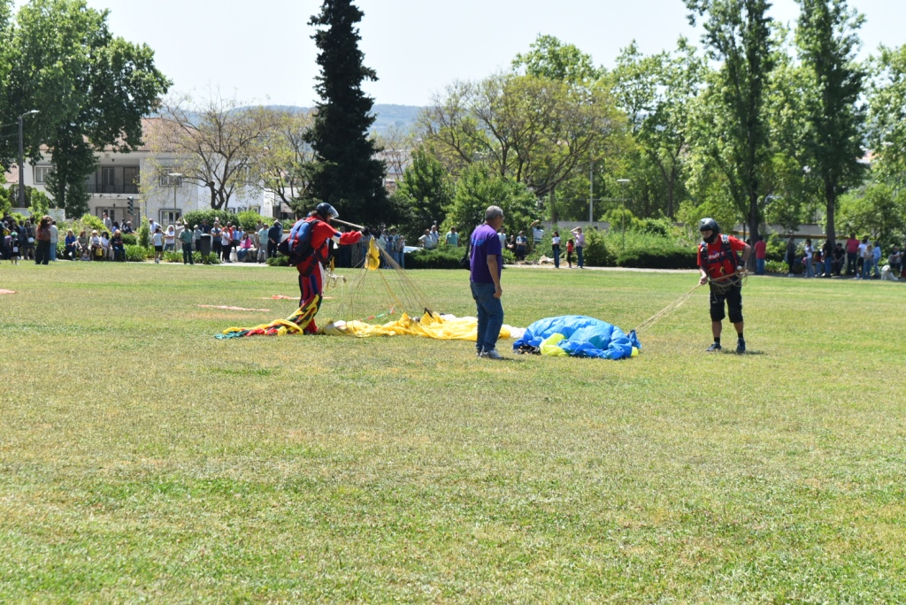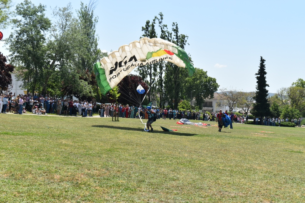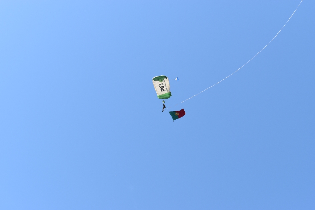 Outro dos momentos mais aguardados da manhã foi o regresso da demonstração de paraquedismo ao Parque Urbano, que voltou a realizar-se em Montemor-o-Novo após cerca de duas décadas de ausência. A iniciativa atraiu a atenção de muitos espetadores, que assistiram ao salto dos paraquedistas num ambiente de grande entusiasmo.