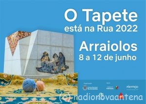 “O Tapete está na Rua” até ao final deste domingo, 12 de junho: uma iniciativa que tem como objetivo promover os “saberes e saberes fazer”, promovida pelo Município de Arraiolos e que integra um conjunto de atividades culturais, como espetáculos, exposições, colóquios e debates, com especial destaque para a “Mostra de Tapetes de Arraiolos”.